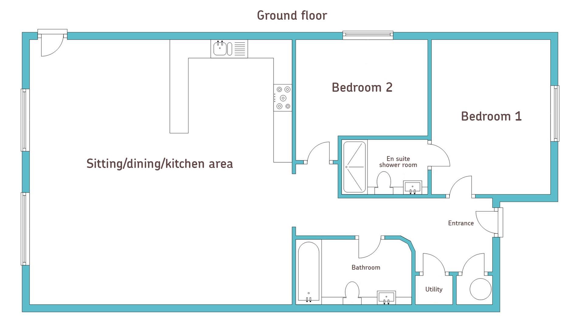 under floor heating, a communal outside shower is available near the entrance, WiFi, up to two dogs welcome, short breaks available.