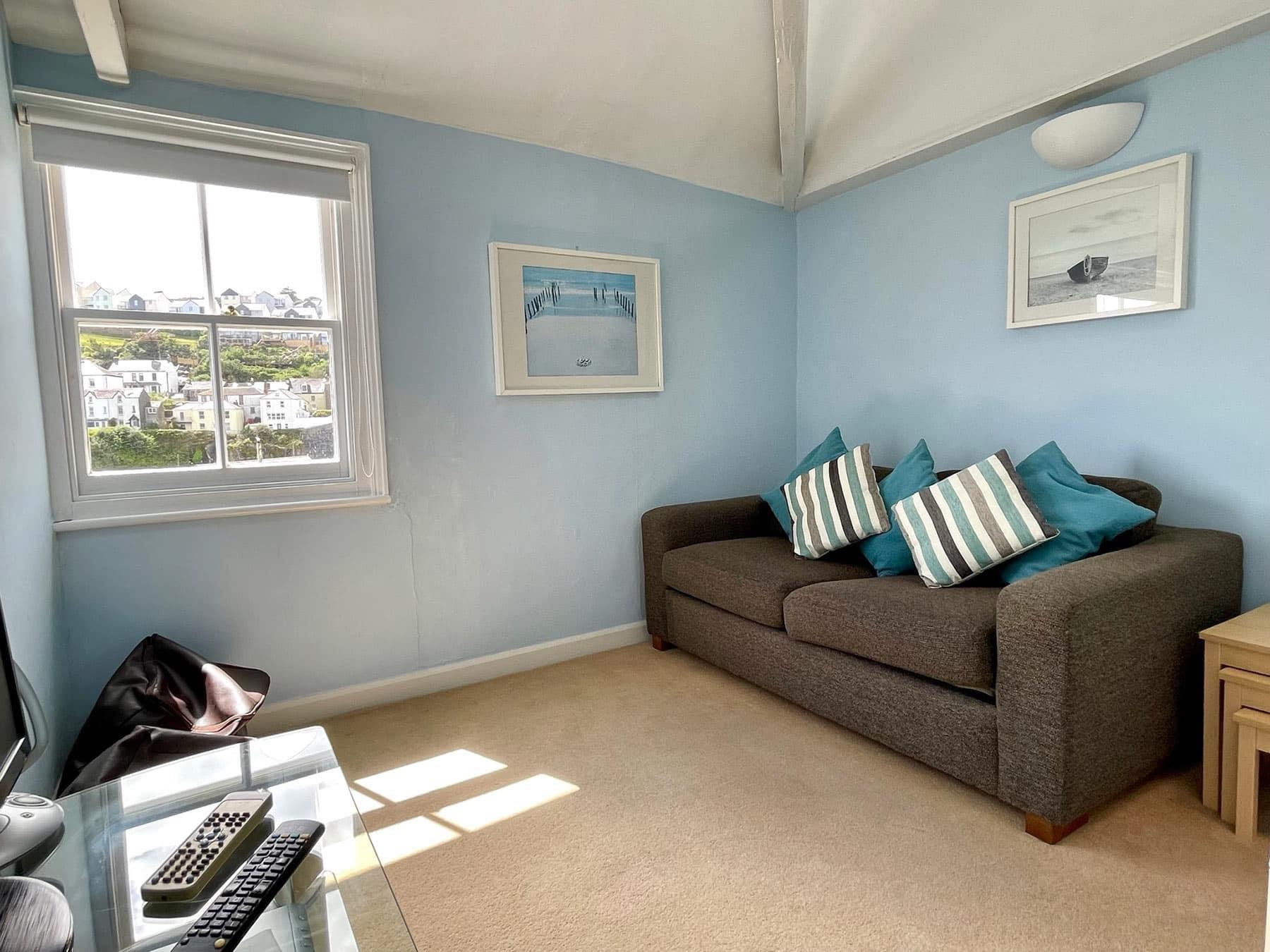 vaulted ceiling. sofa, TV, Bluetooth wireless speaker and iPod dock, great views over the harbour and sea.