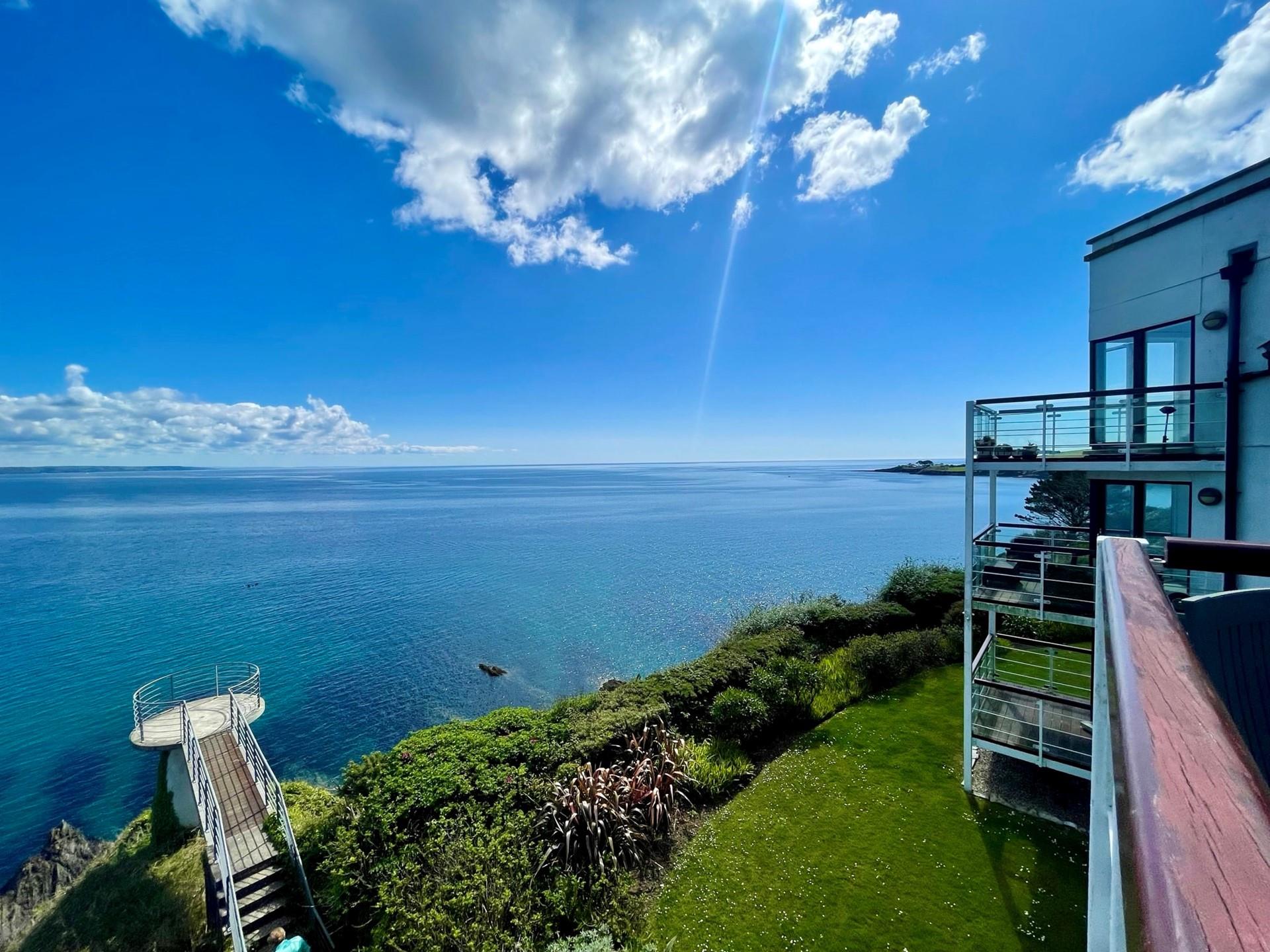 Harbour View, 10 Nare Court is a 2 bedroom, 2 bathroom apartment with private parking and balcony occupying an exceptional clifftop location; it has stunning panoramic sea and coastal views stretching from the outer harbour of Mevagissey across Mevagissey Bay towards Fowey and Looe, and round to Chapel Point. Nare Court sits right on the cliff-edge, with no roads or buildings between you and the sea. Whether you are a sunbather or a storm-watcher, the location is hard to beat, and the apartment is ideal for less mobile guests as it has the benefit of level access from the parking area into the building and apartment.