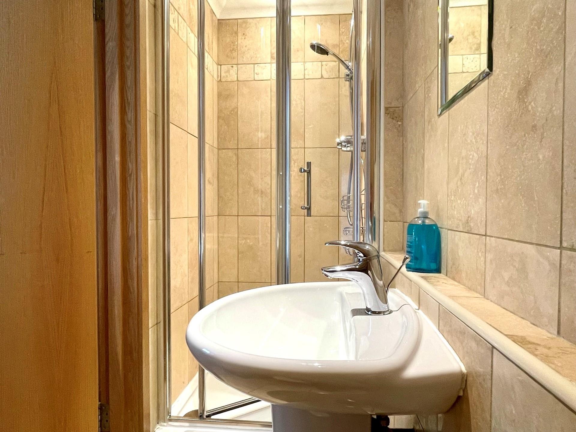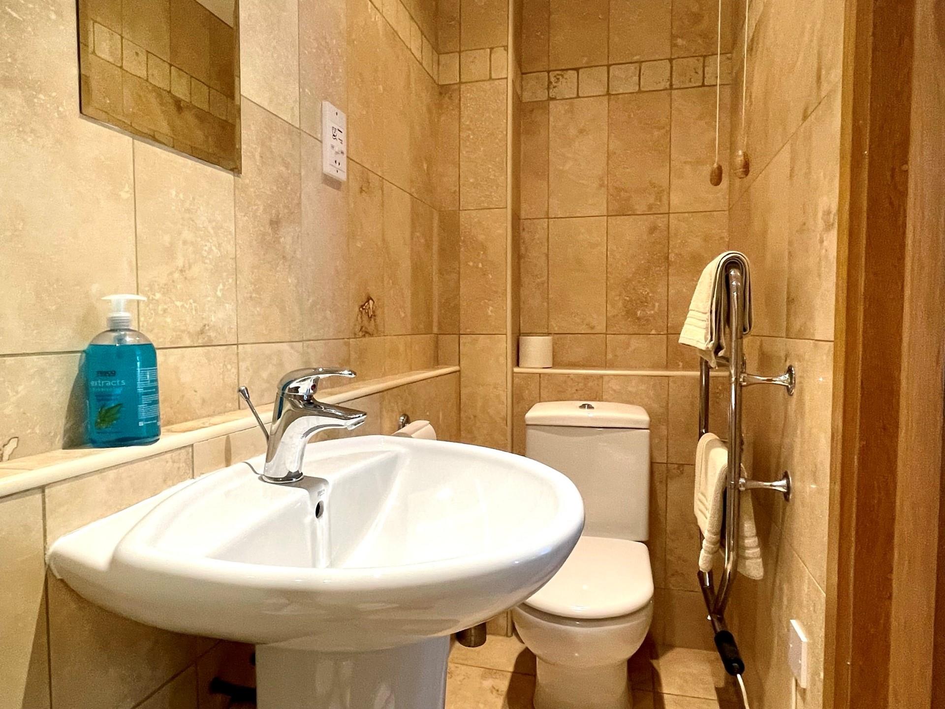 twin beds, en suite shower room with shower enclosure, WC, heated towel rail and basin.