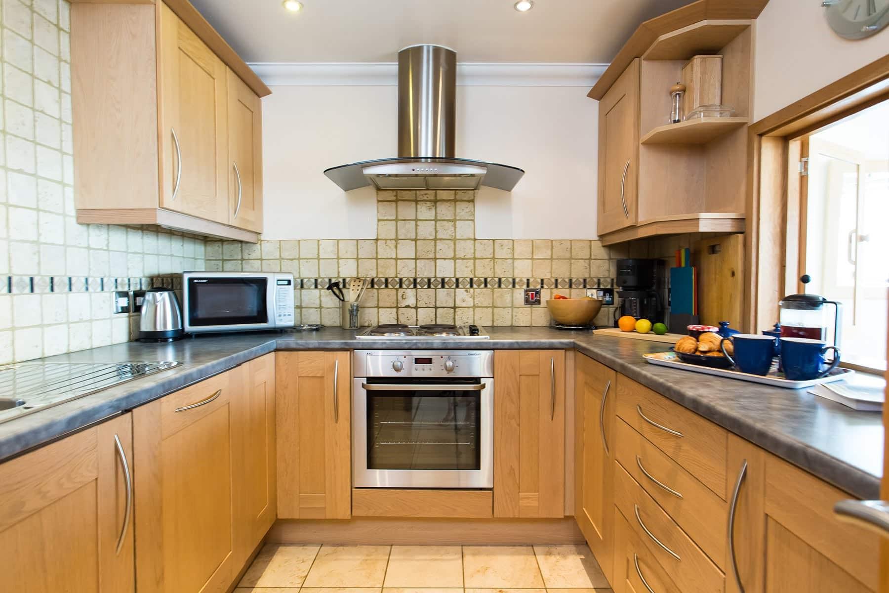 electric oven and hob, large fridge/freezer, dishwasher, washer/dryer and microwave.
