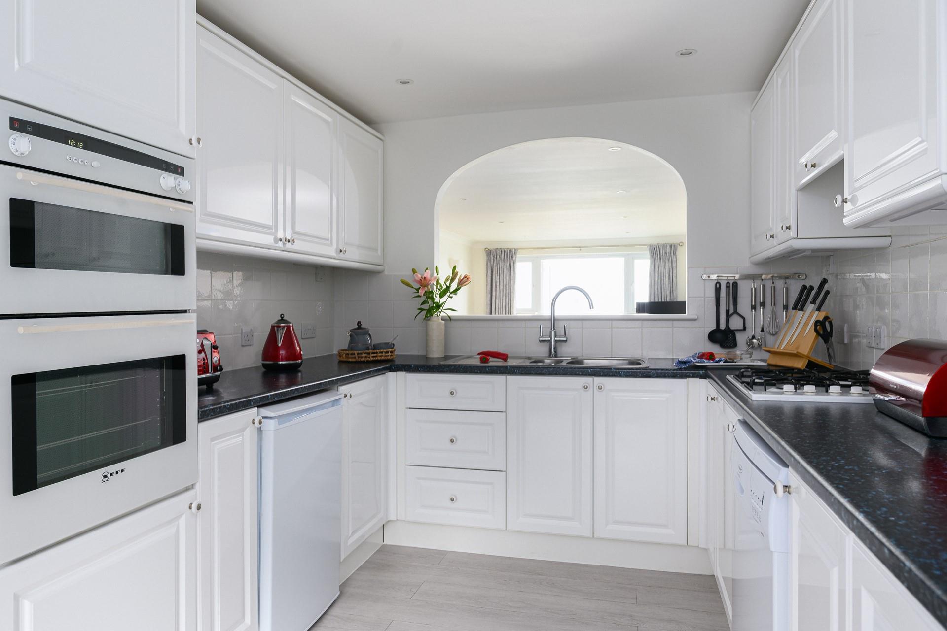 electric double oven and gas hob, dishwasher, washer/dryer, fridge and freezer, Lavazza coffee machine, archway to sitting room with sea views.