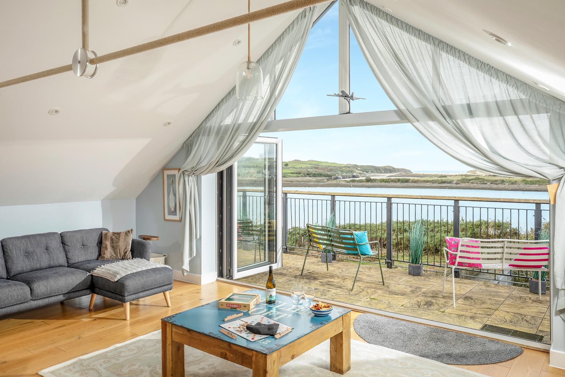 Welcome to Stargazey, a fabulous penthouse apartment, where calm meets comfort. Nestled on the North Cornwall coast, this modern and stylish property offers a truly unforgettable escape. With three spacious bedrooms, including an en-suite shower room to the master bedroom, you will enjoy comfort and relaxation throughout your stay. As you step into this light and airy haven, prepare to be captivated by the panoramic views that stretch across the mesmerising Hayle estuary, and out to the turquoise ocean beyond. Whether you're sipping your morning coffee or unwinding with a glass of wine at sunset, the ever-changing vistas will leave you in awe. Stargazey's contemporary design and tasteful furnishings are perfect for both relaxation and entertainment. The open-plan living area seamlessly connects the fully equipped kitchen, dining space, and comfortable lounge, allowing you to socialise and enjoy quality time together. Large patio doors flood the rooms with natural light, creating a warm and inviting atmosphere that instantly puts you at ease.