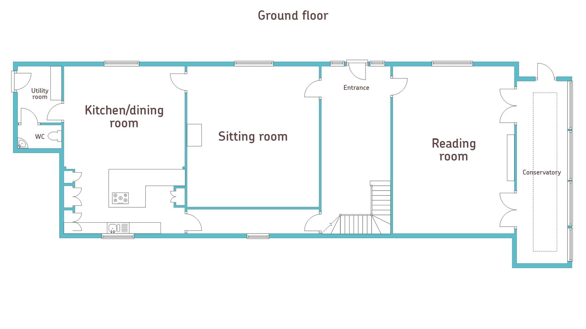 accessed from the hallway to the west side of the house with comfortable seating for up to eight people, feature fire place for decorative use only, upright piano, bookcase with selection of books and games. (Please note that the double doors to the conservatory are locked as this area is not currently available for guests' use).