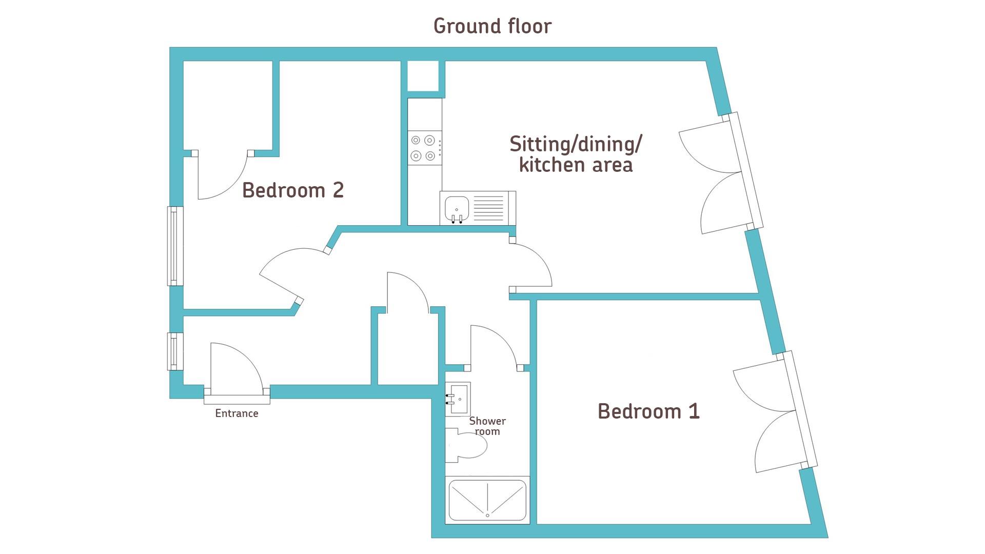 this property has been listed as accessible due to being on the ground floor, though there are three steps leading to the front door, and 2 steps up to the double bedroom and bathroom.